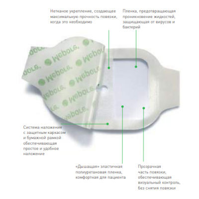 • Возможность визуального контроля без снятия повязки, через прозрачную часть повязки